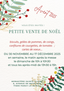 Quelques chambres d’accueil nous permettent de recevoir des jeunes filles souhaitant réviser des examens dans le calme, vivre un temps de retraite, découvrir la vie monastique à la suite de sainte Claire venue se blottir dans la blessure du Cœur de Jésus comme la colombe dans le creux du rocher. Nous contacter : clarisses.paray71@orange.fr